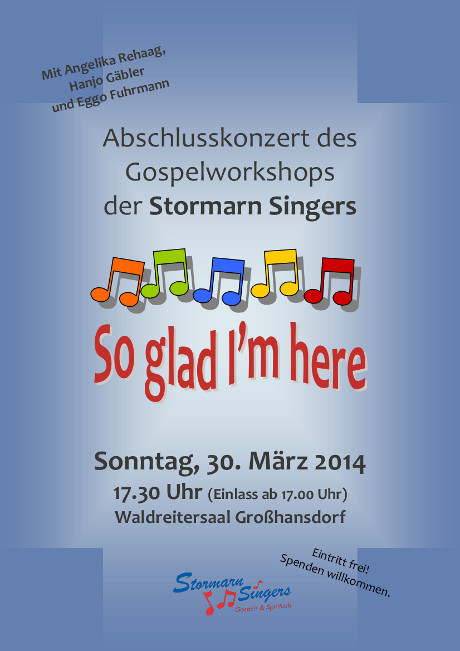 Nun liegen drei wunderbare Workshoptage hinter uns 100 Teilnehmern, die aus allen Himmelsrichtungen nach Großhansdorf zum diesjährigen Gospelworkshop der Stormarn Singers gekommen sind. Wir sind erschöpft, glücklich und voller neuer Inspirationen.