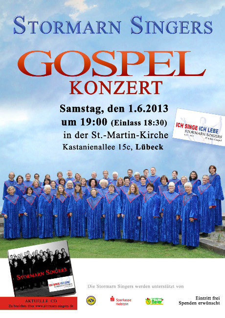 Die Stormarn Singers sind am 1. Juni 2013 zu Gast in der gospelbegeisterten Kirche Sankt Martin in Lübeck St. Jürgen.