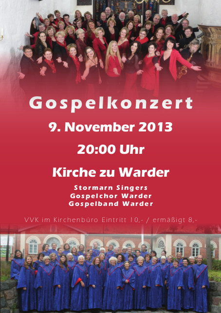 Am Samstagabend, 09.11.2013, findet in der Kirche zu Warder (in der Nähe von Bad Segeberg) unser Gemeinschaftskonzert statt. Und Sie sind recht herzlich dazu eingeladen.