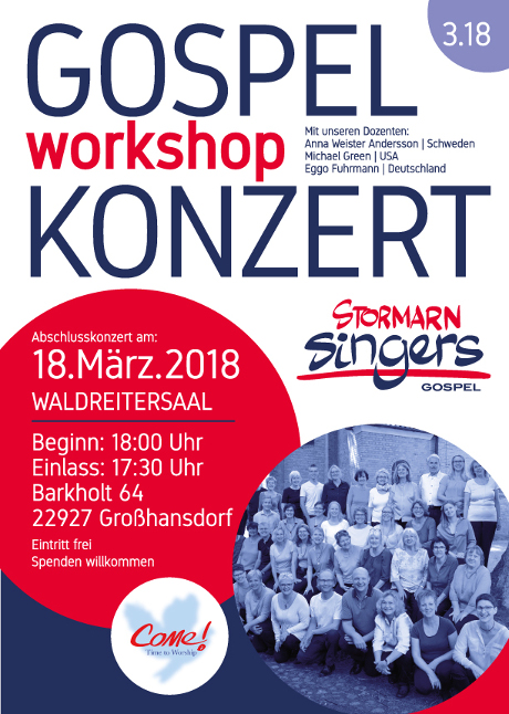 Wer profitieren möchte von seinem humorvollen und inspirierenden Leitungsstil, hat noch die Möglichkeit , sich für einen der Restplätze des Gospelworkshops vom 16. bis 18. März in Großhansdorf anzumelden.